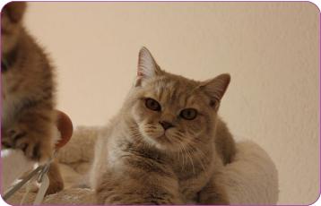 Britisch Kurzhaar Katze in der Farbe lilac schildpatt tabby getigert