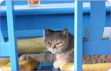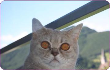 verschmuste Katze. Sie muss immer mit dabei sein.