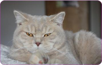 Britisch Kurzhaar Katze in der Farbe lilac schildpatt tabby getigert